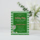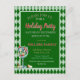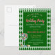 Esta tarjeta postal de la Fiesta de Navidad con tema Rojo y Verde, o invitación a la fiesta de Navidad, presenta un diseño festivo con elegante letra script dorada sobre un fondo negro, rodeado de un patrón de tartán o cuadros rojos y verdes.