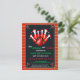 Esta invitación festiva de fiesta de bolos de Navidad cuenta con bolos con tema de Santa y una brillante bola de bolos de vacaciones de color rojo sobre un fondo de cuadros de Navidad alegre, el diseño perfecto para difundir la diversión y el ambiente festivo de la temporada.
