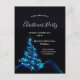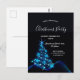 Una moderna y moderna invitación del Partido Navidad en blanco, azul y negro. Un fondo negro con un brillante árbol de Navidad azul purpurinoso decorado con estrellas. Con el texto: Fiesta de Navidades escrito con escritura moderna y moderna de gran tamaño con letras de mano blanca. Plantillas para la información de su fiesta.
