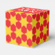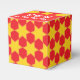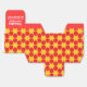 Caja de regalo con estampados rojos y amarillos. Ideal para llenar con favores de cumpleaños y gracias, o para otros eventos generales. Personaliza con tu agradecimiento y nombre en la parte superior de la caja. Diseño de Sarah Trett.