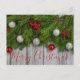 Bonito, postales rústicas de Feliz Navidad con adornos rojos y plateados.
