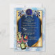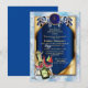 Un diseño de cazador de sueños con plumas de tono de loro exótico azul sobre ORO con un fondo de plumas azules suaves tema de boda