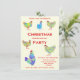 Invitaciones de fiesta de Navidad de gallo y gallina festivos. Ilustraciones de pollos sicodélicos coloridos y lindos en tonos vibrantes de rosa, púrpura, azul, naranja, amarillo y aqua que llevan sombreros de Santa. Una invitación de fiesta de Navidad de pollo loco multicolor linda y fácil de personalizar utilizando las plantillas. Cree una invitación de fiesta de vacaciones de Navidad temática de gallo y gallina de arte de animal de granja única adecuada para niños y adultos amantes de los pollos. Obra de arte original de la artista Catherine Sweetman.