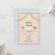 Una invitación de la fiesta de cumpleaños que ofrece un tema de la fiesta del té. Invite tiene un ilustracion de un soporte con gradas dos de macarons franceses en la parte superior con una taza de té rosada y verde con el limón por ambas partes. Personalice con edad en la parte superior de soporte. Invite también ofrece el sólido y guinga que golpean en la parte superior y un fondo azul de la guinga. Personalice el texto con los detalles de su ocasión.