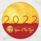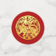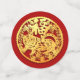 Papel chino dorado cortado de un tigre en un círculo dorado + textos de personalizable (delante sólo para grandes dimensiones), fondo dorado en reverso para medianos y pequeños tamaños. Puede cambiar fácilmente los textos (fuente, color, tamaño y posición) y el color de fondo (aquí rojo oscuro) haciendo clic en el botón personalizar.