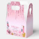 La fiesta de cumpleaños del spa Super Glam favorece a una chica que celebrará su día especial en el spa o salón con sus amigos, para que la mimen y celebren esta adorable ocasión. Bellas cajas con purpurina de goteo rosado y esmalte y maquillaje de uñas.