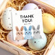 Fiesta gracias etiqueta con tres pequeños conejito