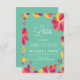 Una divertida y colorida invitación de fiesta con tema tropical hawaiano luau con borde floral abstracto. Perfecta para una boda luau, cumpleaños o cualquier otra ocasión divertida.