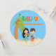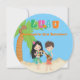 Empieza tu celebración con esta adorable invitación a Luau. Es único y redondo. Ya sea una barbacoa en el patio trasero o un fiesta de cumpleaños para niños, ésta es la invitación perfecta para usted! Tiene letras brillantes y coloridas que escriben "Luau" en el centro superior. Un fondo azul cielo claro con una playa de arena. En la playa hay dos niños hawaianos bailando. El chica tiene el pelo largo negro y lleva una falda de pasto y un lai alrededor de su cuello. El chico está tocando un instrumento musical, guitarra. A la izquierda hay una gran palmera. Es la invitación perfecta para una fiesta de cumpleaños de niño, chica o gemelo. Consulte los muchos otros diseños y productos de esta línea. ©bonito grafik
