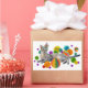 Un gatito de tabby con un gorra de cumpleaños espera a que empiece el fiesta. Un pegatina de cumpleaños divertido y colorido.