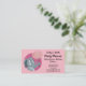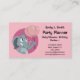 Tarjetas de visita para el planificador de fiestas y fiestas de ducha para bebés, también aptas para otras profesiones relacionadas con los niños y el cuidado de los niños; ilustracion de diseño de animales salvajes rosa con un elefante sonriendo alegremente y sosteniendo globos fiestas; el diseño está personalizado con campos de texto de personalizable para agregar su nombre, negocio, dirección y otras informaciones