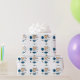El papel de embalaje con una figura linda animadora del palillo en un blanco y el azul uniforman con los poms azules del pom.