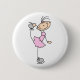 Una figura chica del palillo del patinaje de hielo con un vestido rosado se ofrece en este botón adaptable.