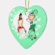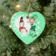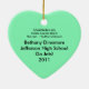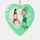 ¡Una figura uniforme verde animadora del palillo en un ornamento en forma de corazón de la porcelana que para requisitos particulares usted puede modificar fácilmente antes de ordenar con sus nombres del nombre, de una cita, de la escuela y del equipo, y su foto! ¡Hace un gran regalo para las animadoras!