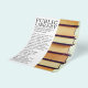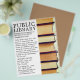 Fila de libros antiguos, volantes publicitarios de biblioteca por la tienda de tarjetas de visita.
