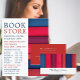 Fila de libros, publicidad en la tienda de libros