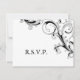 Esta clásica invitación RSVP en blanco y negro se ve nítida con un diseño de trabajo de desplazamiento en blanco y negro. Da un aspecto fresco, elegante pero romántico, moderno con un toque de época. Esto es parte de nuestra colección Filigree Swirl que tiene tanto remolinos blancos sobre un fondo negro como torbellinos negros sobre un fondo blanco, para que puedas mezclar y coincidir con tu gusto. El color de fondo es personalizable... sólo tienes que pulsar el botón "personalizar" para cambiar el color. ¿Cuál es tu color favorito con el negro? ¿Negro sobre rosa pálido o con verde suave o gris plateado? Tus colores, a tu manera.