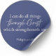 Pegatina cristiana minimalista con Filipenses 4:13 sobre un fondo índigo profundo con tipografía suave de color blanco apagado.