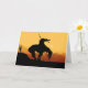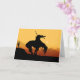 Fin de la silueta de senderos al atardecer la tarjeta de saludo