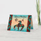 Personalice este exclusivo "One Of A Kind" Final De La Tarjeta De Navidades De Trail! Cuenta con un extremo nativo americano del camino indio y caballo en un fondo turquesa, y atardecer Naranja... ¡Rodeado de fronteras turquesas, negras y Naranjas! Este es un Diseño de Arte Gráfico Original creado por el artista Kerry Miler.