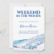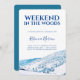 Invite a su tribu de novias a un fin de semana en el bosque con esta invitación que incluye las montañas de Colorado.