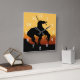 Silhouette del fin de la escultura del camino que representa a un nativo americano cansado en un caballo cansado al reloj de pared de la puesta del sol