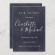 Con nombres de estilo característico, este elegante tiza para guardar la tarjeta de fecha se puede personalizar con la información especial del día de la boda en letras blancas de moda. Diseñado por Thisisnotme©