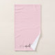 Toalla de mano personalizada moderna elegante y chic con monograma de nombre en letra script rosa pastel. Este delicado diseño presenta un nombre personalizado en una fuente caligráfica de cola de floritura manuscrita cursiva (o tipografía) en negro sobre fondo de color rosa pastel o rosa bebé. Un regalo femenino y elegante para estrenar casa, también ideal para cumpleaños, despedida de soltera, boda, fiesta de cumpleaños de 16 años, día de la madre, despedida de soltera, aniversario y fiesta de graduación, y es ideal para la chica que gusta de cosas elegantes y con estilo.