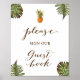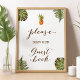 Agregue un toque de encanto tropical a su evento especial con este letrero de cartel de "Firme nuestro libro de visitas" que presenta vibrantes hojas tropicales y un diseño de piña dorada. Este letrero es perfecto para cualquier evento, desde una boda en la playa hasta una fiesta con tema de luau. La opción de descarga digital hace que sea fácil imprimir en casa o en una imprenta profesional.