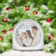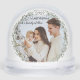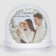 Celebrate baby’s first Christmas with this charming Snow globe, perfect for new parents! Features the elegant script "Our First Christmas as a Family of Three." This personalized Christmas gift is a beautiful keepsake to cherish for years to come. a light green wreath frames the photo of your little family.