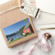 Pegatina fotográfico rectangular de recuerdo con vistas al fiordo Hardangerfjord, con algunas montañas y un faro rojo de Ulvik, Hordaland, Noruega.