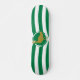 Skateboard with design with a flag of historic county of Wiltshire, in England, Great Britain; white and green flag with angled stripes and great bustard in the center