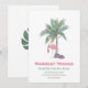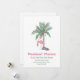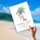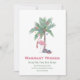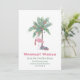 Flamenco de Navidad con sombrero de Santa con palmera decorada. Deseos más Cálidos desde nuestra nueva casa para las fiestas. Tarjeta. La plantilla está configurada para que puedas agregar los detalles de tu nueva dirección y mantenerte en contacto con amigos y familiares durante la temporada navideña.