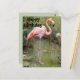 Flamenco Rosa Pintado En Estanque, Tarjeta Postal