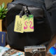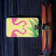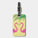 Esta etiqueta de equipaje tropical está decorada con flamencos de fucsia y hojas de palma en la parte delantera, y toda tu información personal en la parte trasera, lo que lo hace perfecto para tus próximas vacaciones.