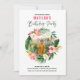 Invitación a la fiesta de cumpleaños de fotos del follaje tropical colorido y brillante. Un diseño acuático moderno y luminoso. Flores tropicales divertidas, fruta de verano y flamencos. Parte de una colección tropical brillante.