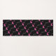 Los flamencos rosa brillante y el tipo que dice alto, decoran esta alfombra de yoga en un fondo negro, haciéndolo perfecto para la próxima clase de yoga. El dicho, alto, en esta alfombra de yoga puede ser fácilmente personalizado para decir lo que prefieras. La parte trasera de esta alfombra reversible está decorada con flamencos más rosados.
