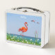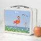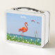 Hermosos flamencos de coral rosa sobre un hermoso paisaje floral. Nombre texto listo para ser personalizado.