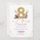 Flamingo 8ª fiesta de cumpleaños, invitación brillante. CAMBIAR EL TEXTO PARA QUE SE AJUSTE A SU FIESTA Y a la impresión posterior incluida.