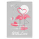 Un par de flamencos rosas con cuello curvado forman un corazón parado en el mar en una playa iluminada por la luna. Este diseño elegante y romántico con un toque retro es perfecto para bodas, El día de San Valentín o personas a las que les encantan los flamencos. Creado en un esquema de color rosa, gris y blanco con un fondo de cambio de color. Un diseño de personalizable para que puedas personalizar con tu propio texto, imágenes e ideas. Imagen original de arte digital.