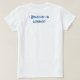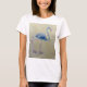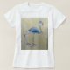 Flamingo azul con camiseta de perlas. "Entiendo la asignación" por detrás.