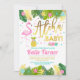 Invitación de Baby Shower de Flamingo. Todos los diseños son © PIXEL PERFECTION FIESTA LTD