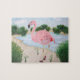 8"x10" Rompecabezas de flamingo en el diseño de pantano hecho en lápiz de color.