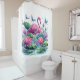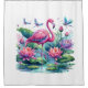 Una Hermosa Cortina Tropical Con Flores Y Flamingo Rosa