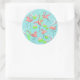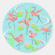 Los animados flamencos rosados aletean sus alas y escarban sus plumas en un fondo de agua azul con cañas y nenúfares. Un diseño elegante con un toque retro que se puede personalizar con tu propio texto, imágenes e ideas. Imagen original de arte digital creada por Quirky Moda.
