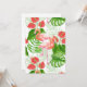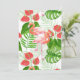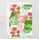 Diseño acuático con flores y pájaros flamencos, monstera y hojas de palma.