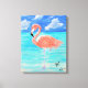 La reproducción impresa de un flamingo en la playa es una reproducción de una pintura acrílica original del artista medio y espiritual Gigi T. Sunshine. Lienzo estirado, 16"x20" adecuado para colgar sin marco