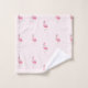 Flamingo de pie rosa liso con un patrón de fondo rosa pálido.