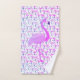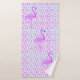 Un flamenco rosa brillante sobre una pierna con una variedad de flamencos más pequeños con varios tonos rosas en el fondo. La locura del flamingo.