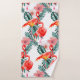Este juego de toallas de baño presenta un patrón de flamencos rosa y naranja de coral, flores de hibisco rosa y hojas tropicales verdes verde azuladas oscuras. El patrón se coloca sobre un fondo blanco y crujiente, y se repite a través de la gran toalla de baño. La toalla de mano y el paño de lavado tienen un borde inferior de flamencos a juego sobre un fondo blanco, y el contraste es agradable cuando se cuelga con la toalla. Para una decoración completa, no olvide ver la cortina de ducha y la alfombra de baño de nuestra tienda.